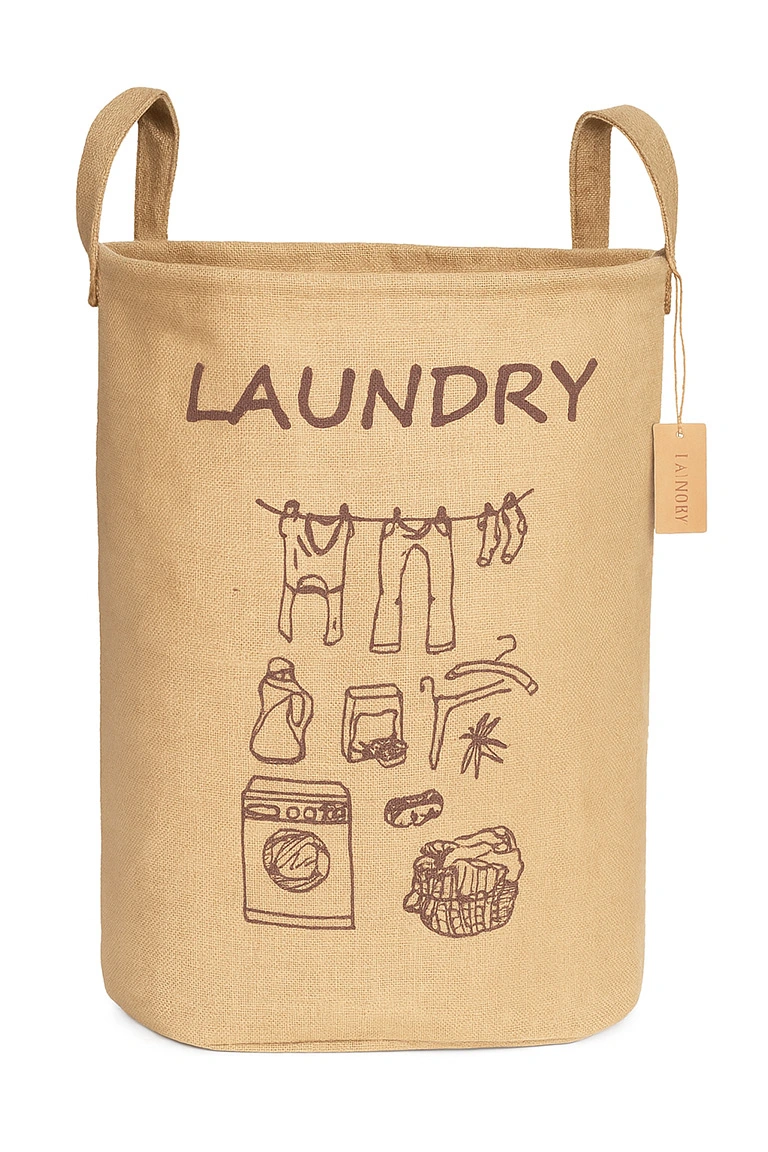 The Laundry Line Storage Bin combines playful utility with rustic charm. Featuring sketched illustrations of laundry essentials and a bold “LAUNDRY” label, it adds a quirky touch to your space. Its cylindrical structure with reinforced handles ensures durability and ease of use. Perfect for organizing dirty clothes or storing linens, this bin blends convenience with a light-hearted design that’s both practical and decorative.