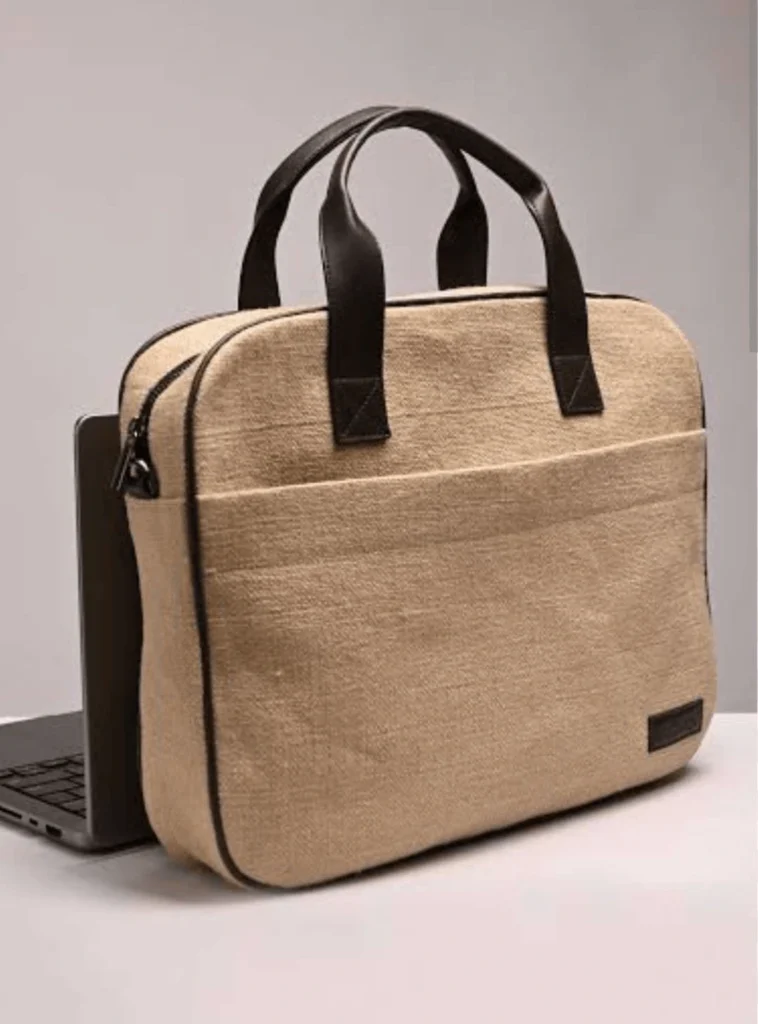 Professional-grade jute laptop bags for companies, schools, and events — available with logo embossing, brand colors, and tailored designs to align with your organization’s identity.